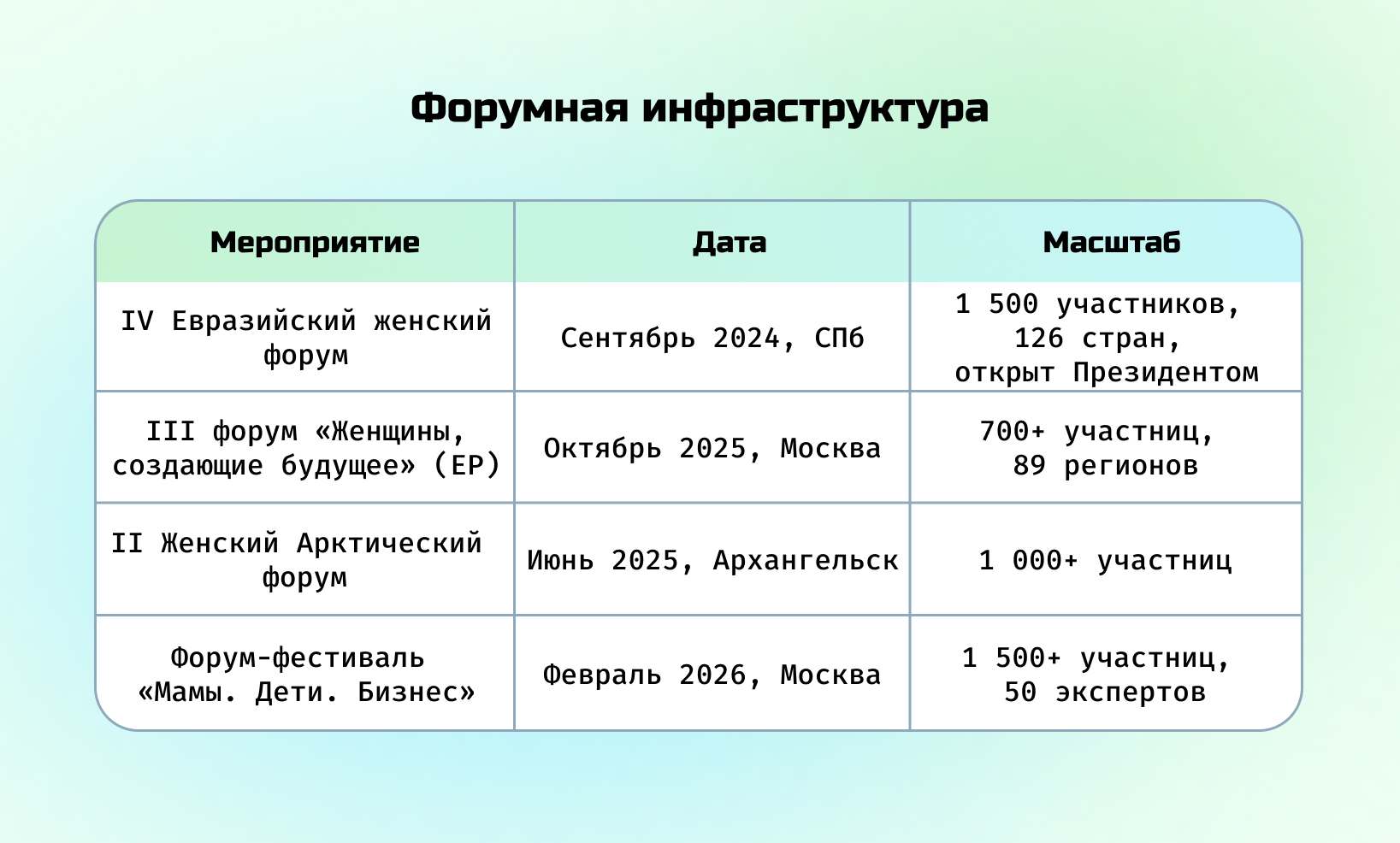 Таблица 4. Форумная инфраструктура