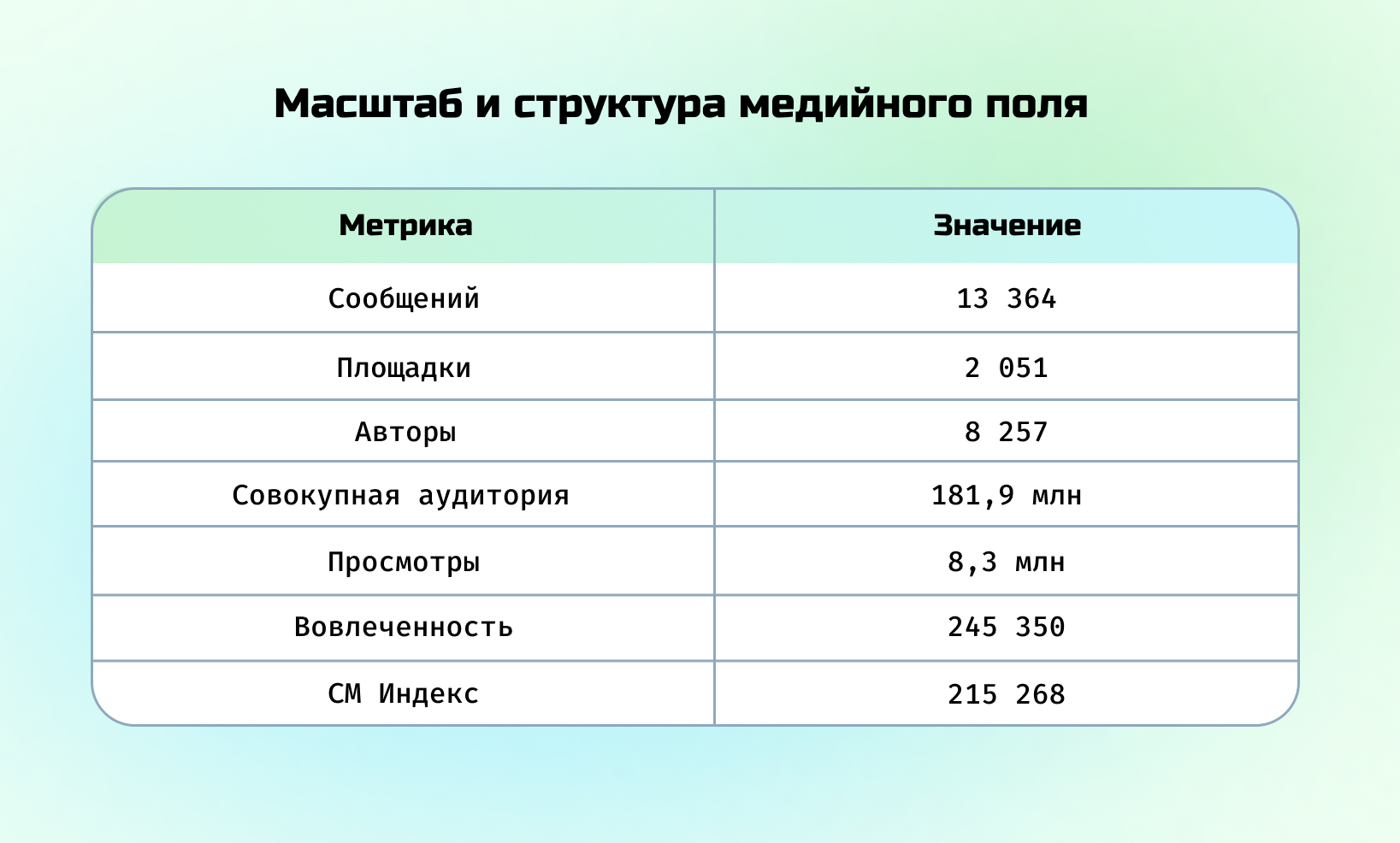 Таблица 5. Масштаб и структура медийного поля