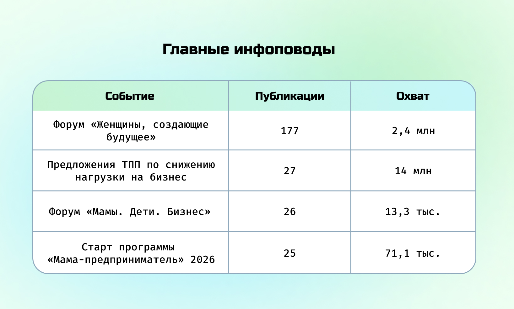 Таблица 6. Главные инфоповоды