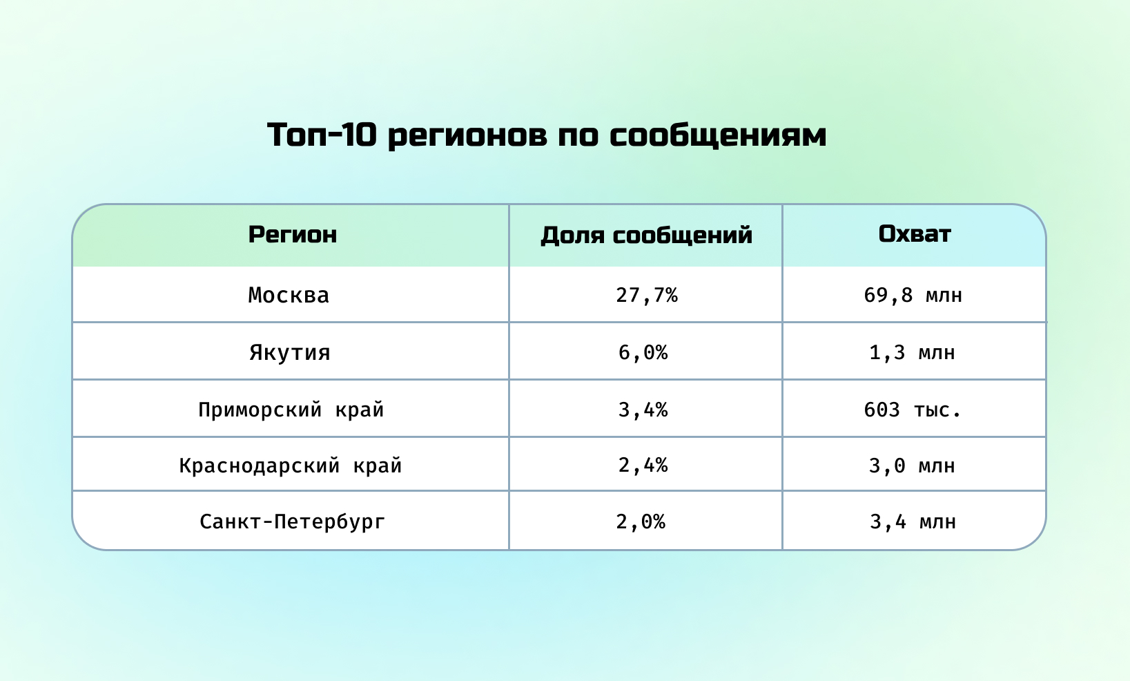 Таблица 7. Топ-10 регионов по сообщениям